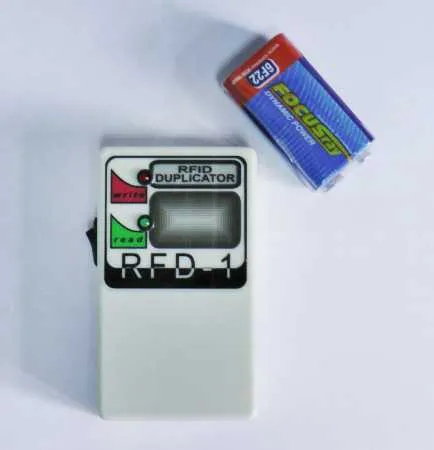 Копировальщик RFD-1 удивит и порадует Вас простотой своей работы, легкостью и, что очень немаловажно, ценой. Этого "малыша" по праву можно назвать спецом бесконтактных карт и брелоков RFID. Дубликатор скопирует Ваши ключи к домофонам Vizit (Визит), Metacom (Метаком), Eltis (Элтис) другим, где используются бесконтактные средства с RFID-метками. Автономность копира обеспечивает элемент питания типа "крона" с его 9 Вольтами.