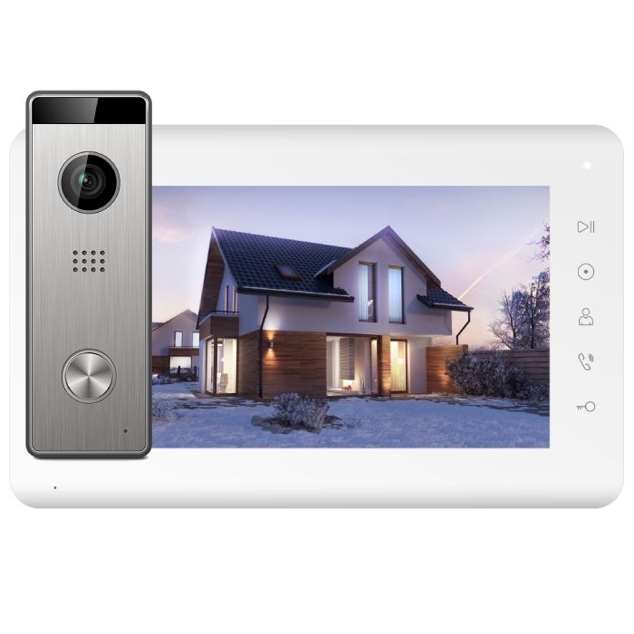 - Монитор цветного видеодомофона 7 дюймов с сенсорными кнопками с поддержкой форматов Full HD 1080p, HD 720p, CVBS .