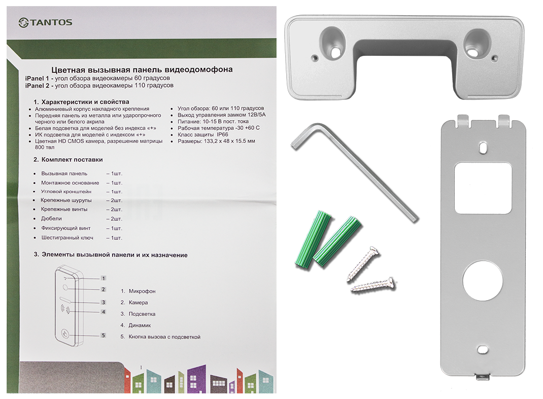 Комплект видеодомофона Tantos TS состоит из вызывной панели и цветного 7-дюймового монитора с сенсорными кнопками, объединивших надёжность и продвинутую функциональность. Разрешение монитора 800×480 пикселей обеспечивает чёткое и детализированное изображение посетителей при любых условиях освещения.Купольная видеокамера имеет разрешение 1920х1080, с объективом f=2.8 мм и углом обзора 104° по горизонтали. Встроенная ИК-подсветка, позволяющая фиксировать объекты в полной темноте на расстоянии до 20 м.