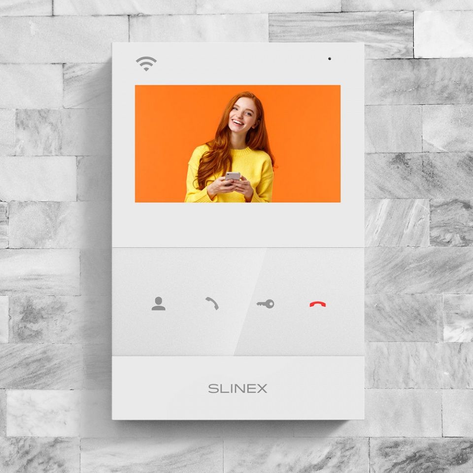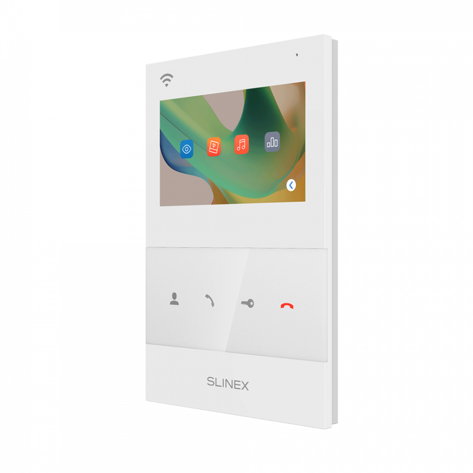 Доступные цвета: белый, черный. IPS цветной экран 4.3", интеграция с платформой Slinex Smart Call, форматы AHD/CVI/TVI и CVBS, подключение по WiFi, поддержка карты microSD до 256 ГБ, адресный интерком на 4 монитора в системе.