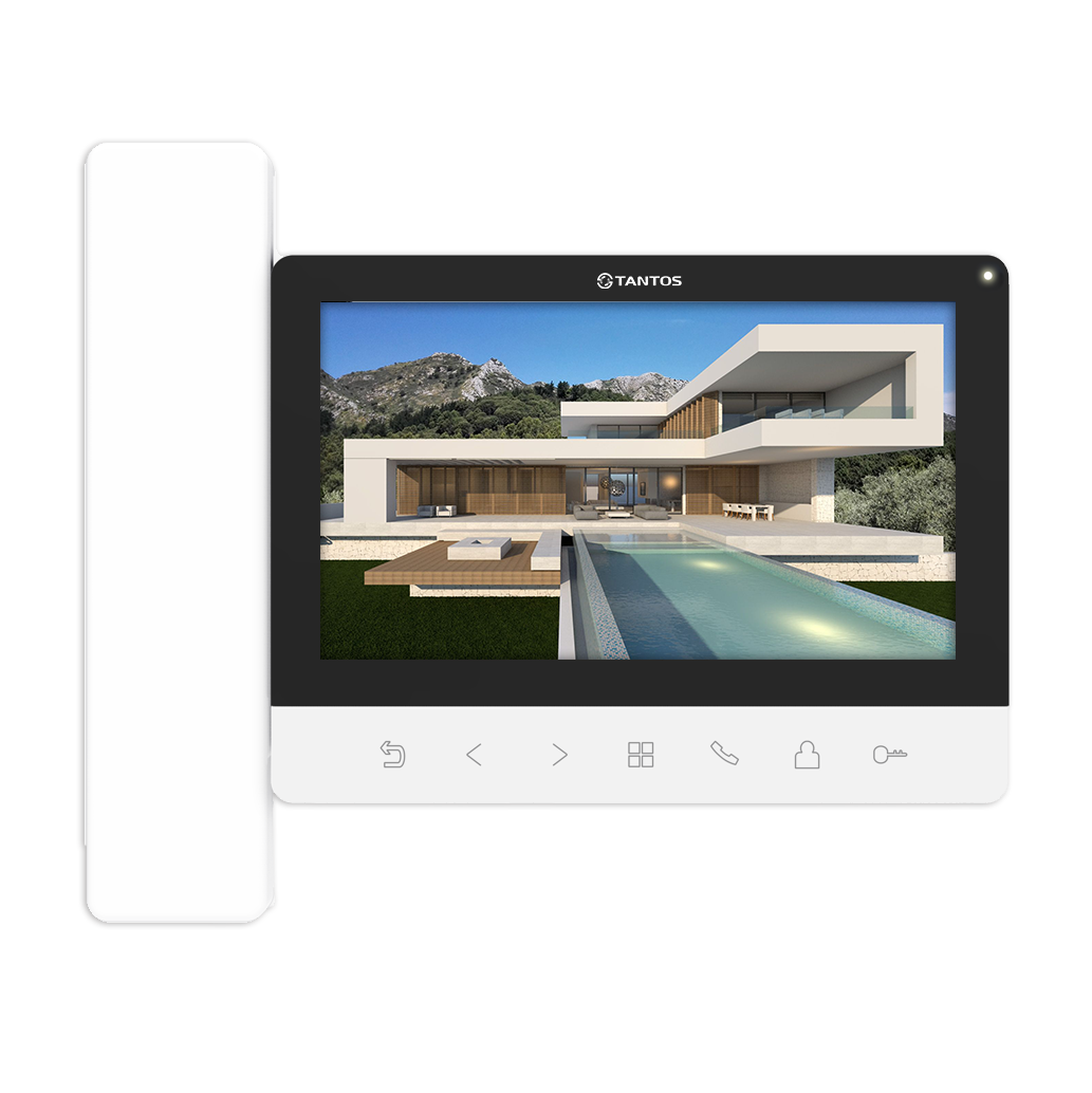 Доступные цвета: белый. Экран 7 дюймов с разрешением 1024х600, с трубкой, с сенсорными кнопками. С возможностью записи по детектору движения по одному каналу. Адаптирован для работы с многоквартирными домофонами.