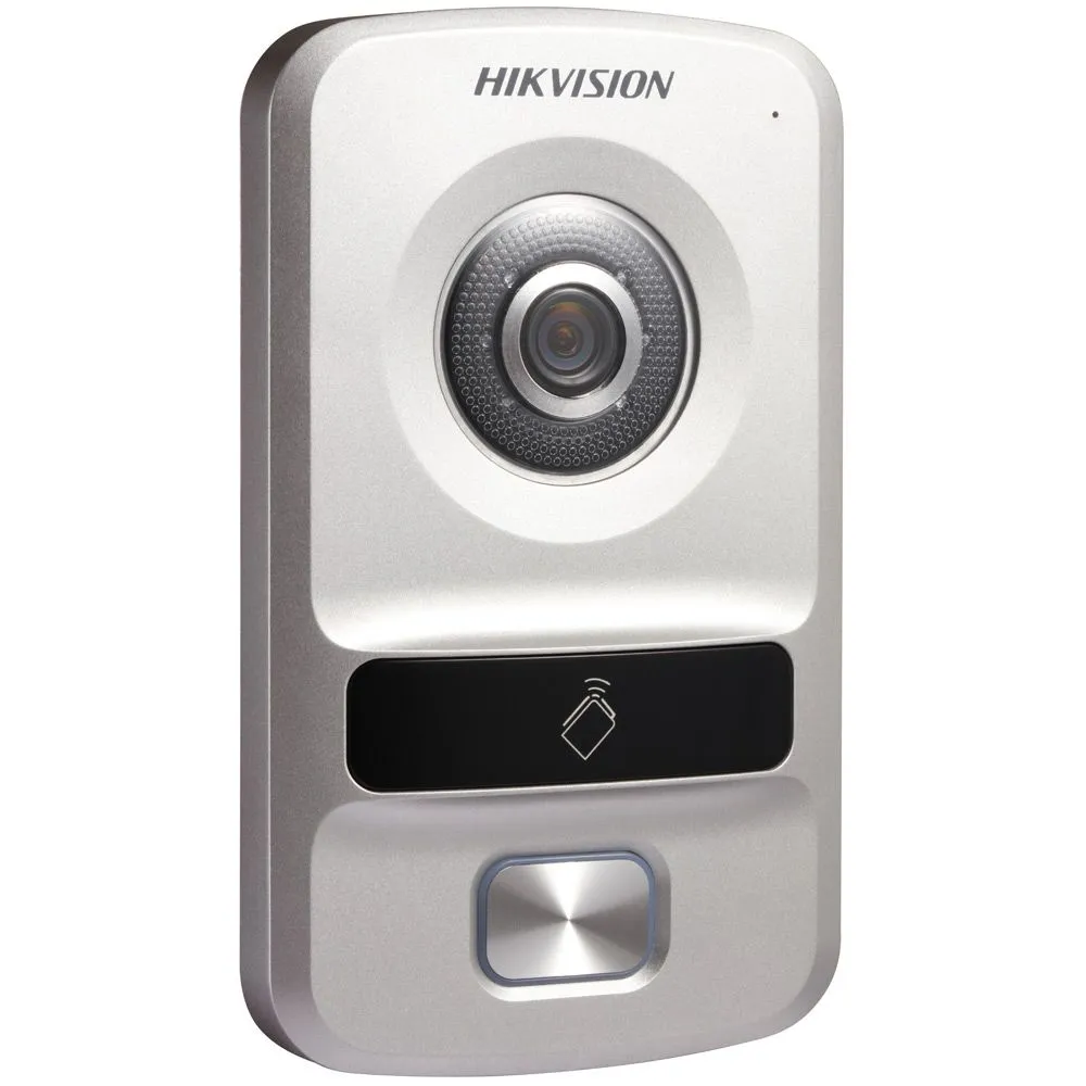 Доступные цвета: серебристый. Вызывная панель Hikvision DS-KV8102-VP, Hikvision, угол обзора панели 120°, с ИК-подсветкой. Изображение выводится на цветной ЖК-дисплей 3.5" с разрешением 1280х720.