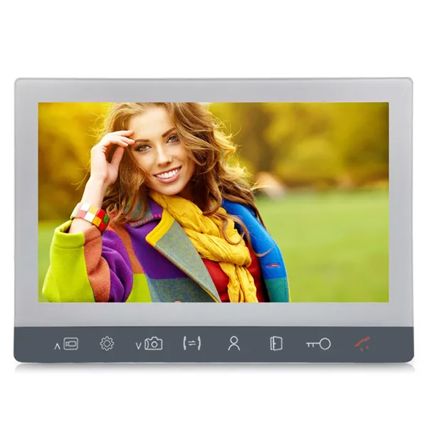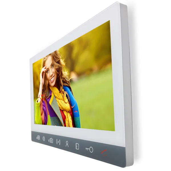 Цветной видеодомофон J2000-DF-АЛИСА AHD 2mp, hands-free 10" видеодомофон. В белом цвете с элементами хрома. Экран HD (1024х600) с мультиформатной поканальной поддержкой видеоформатов (2 mp и ниже): AHD, CVBS (PAL, NTSC), TVI, CVI. Поддержка функции записи видео по детекции движения (одновременно до трех источников видеосигнала) на карту микро SD до 128 Гб.