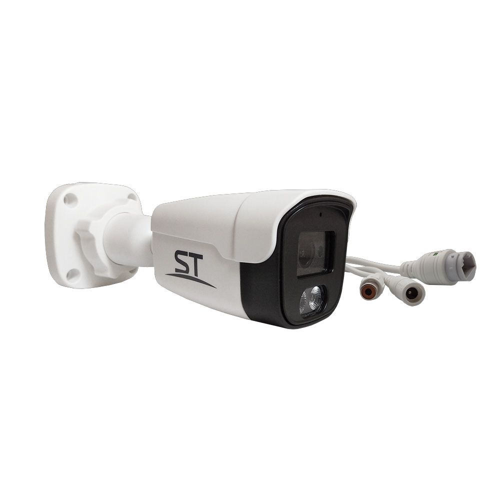 Видеокамера ST-SX4545 POE, цветная IP, Разрешение:4 Mp (2560*1440), уличная, с ИК подсветкой, Цилиндрическая, Фокусн. расст.: 2,8 мм (Гор.103°/Верт.56,8°/Диаг.121°), Сенсор: 1/2,9" Progressive Scan CMOS, Дальн. ИК подсветки: до 20 м, Светочувствит. (мин. освещ.): 0,01Lux(цвет) / 0,001Lux (с IR), Кодек сжатия: H.264, H.265, Кодек сжатия аудио: G.711 А, Аудио вход/выход: 1 (RCA) / -, Напряжен. питания: 12В, PoE: Опция* Сплиттер (802.3af(вариант А/В)), ИК-фильтр: Механический, Функц. улучш. изобр.: BLC,DWDR,2D и 3D-DNR,AGC, Onvif 2.6 (Profile S), Smart IR: есть, Xmeye, iCSee, Кол-во к/с: 20 к/с, Регулир. кронштейна: 3D-Ось, Раб. темп.: -45…+60°С, Степень защищен./вандалостойкость: IP66, Материал корпуса: Металл, пластик