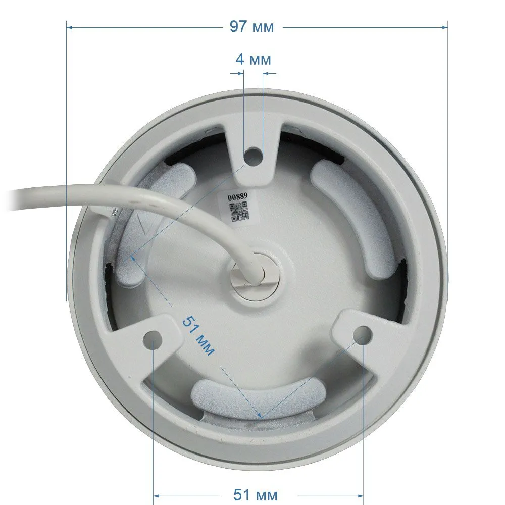 - Комплектность: Камера с кабелем для подключения, крепеж (дюбель-пробка + шуруп), колпачок защитный, ПВХ, для изоляции LAN (RJ-45) разъема от влаги