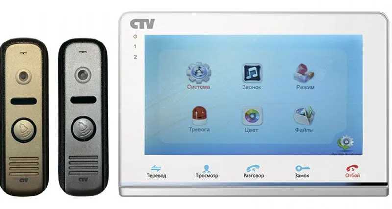 Доступные цвета: белый. Монитор 7" с разрешением 1024х600, сенсорные кнопки, карта памяти на 64 ГБ. Подключение: до 2 вызывных панелей, 2 камер, 6 мониторов.Два монитора обеспечивают удобное управление системой в разных частях квартиры.