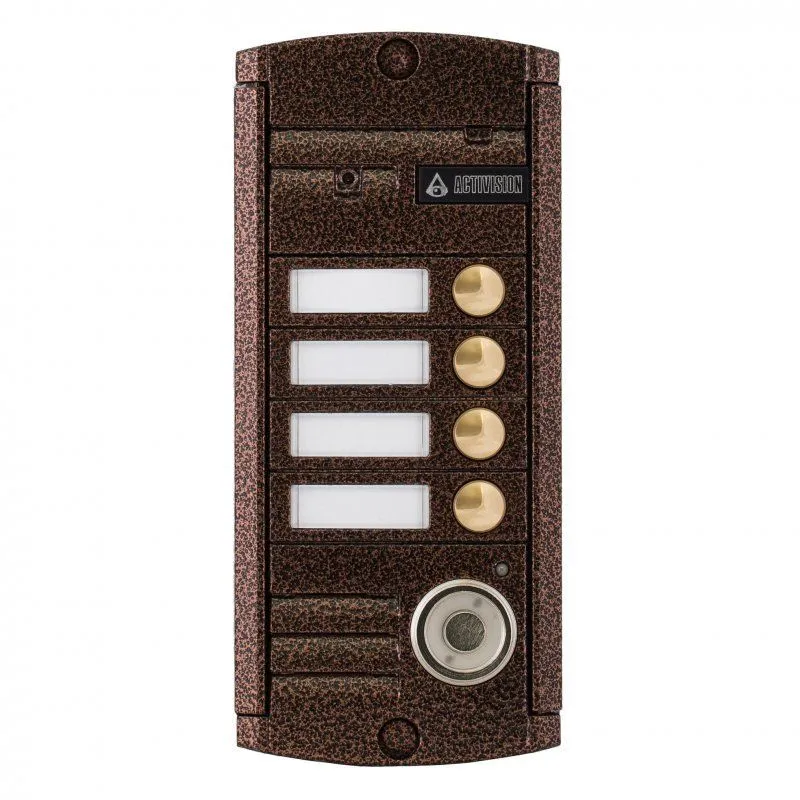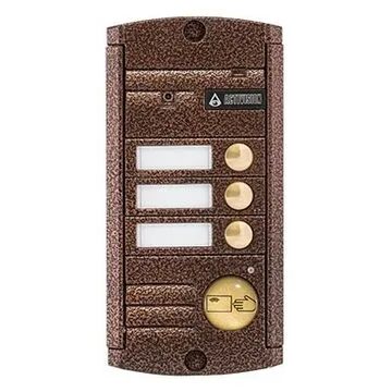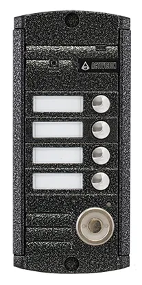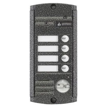 Доступные цвета: антик, медь. Видеокамера 1/3", 1000 ТВЛ, встроенная ИК-подсветка до 0,6 м, встроенный Touch Memory считыватель, 75° угол обзора по горизонтали, накладная установка, антивандальное исполнение, 4-проводное соединение, 4 абонентов