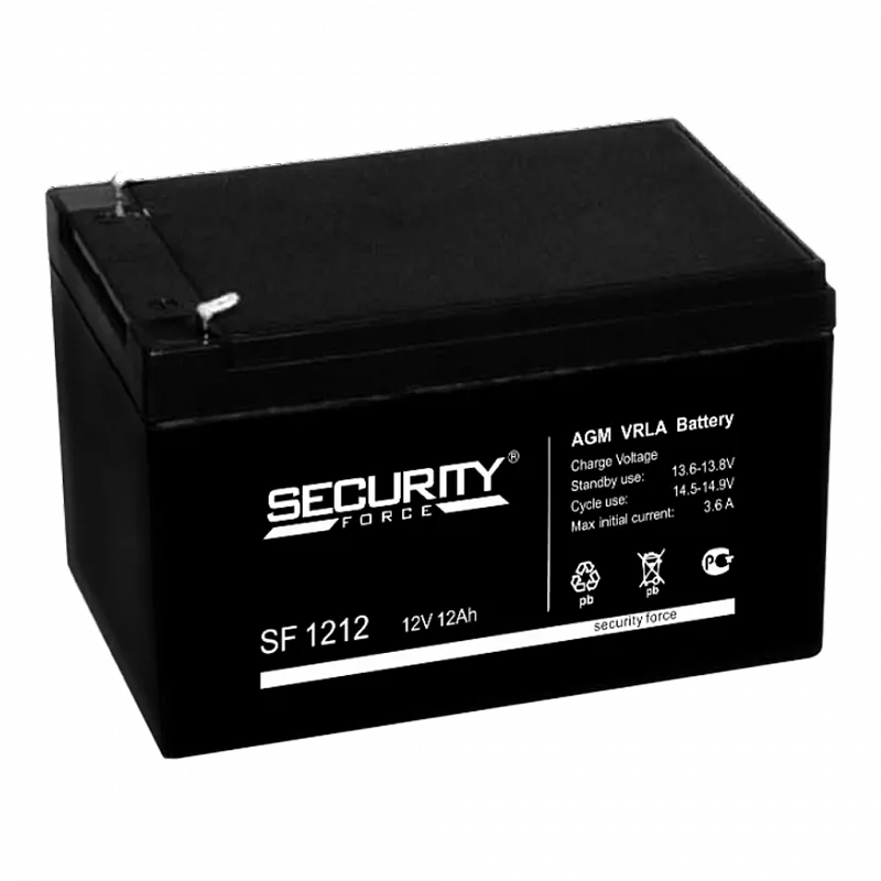Аккумулятор SF 1212 - стационарный свинцово-кислотный, Емкость аккумулятора: 12 Ач, Номинальное напряжение: 12 В, Хранение: -20...+50°C, Заряд: -10...+50°C, Разряд: -15...+50°C, Размеры: 151х98х101 мм.