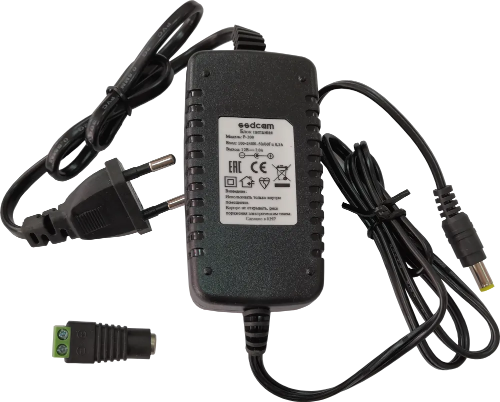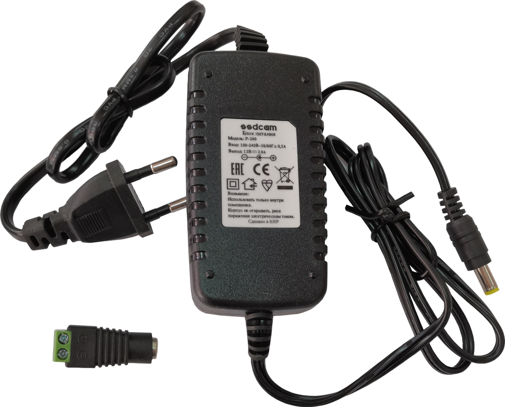 Блок питания Ssdcam P-200 - ток нагрузки - 2A; Входное напряжение переменное от 160 до 242В, частота 50Гц, Выходное напряжение - DC 12V; предельно допустимый ток - 3,2А.Защита от короткого замыкания. Допустимая температура окружающей среды - 0...+40°C при относительной влажности воздуха не более 90%.