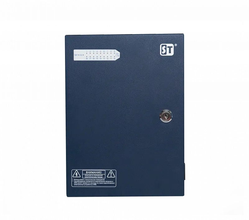 Блок ST-ББП-30AR бесперебойного питания - 12В/30А,с возможностью автономной работы от АКБ 40А/ч, защита от КЗ и глубокого разряда, Потребляемая мощность по сети 220В: не более 400 Вт, Мощность по цепи нагрузки 12 Вольт (при максимальном выходном токе: не более 360 Вт, Напряжение выходное,номинальное при наличии напряжения сети 220B: 12,0 В, Максимальный ток заряда АКБ: 2,0 А, Количество выходов (12Вольт / 1,5А): 18 шт., Максимальный ток нагрузки 1 канала: 1,5 А, Величина пульсаций выходного напряжения при номинальном токе нагрузки: не более 100 мВ, Ток ограничения выхода при коротком замыкании нагрузки: >1,7 А, Индикация: есть, Защита от короткого замыкания: есть, Рабочая температура: -25...+40°C.