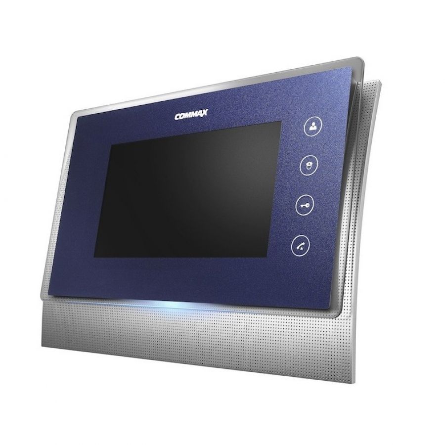 Доступные цвета: серо-синий, белый. Цветной экран 7.0", TFT LCD,PAL/NTSC, высокого разрешения , PAL/NTSC, без трубки (Hands Free), память на Micro SD до 16Gb, PiP, подключение 2х вызывных блоков , 2х камер наблюдения , запись по датчику движения, функция картинка в картинки, подключение трубки DP-4VHP, вызов и связь "трубка-монитор", накладное исполнение, закаленное стекло