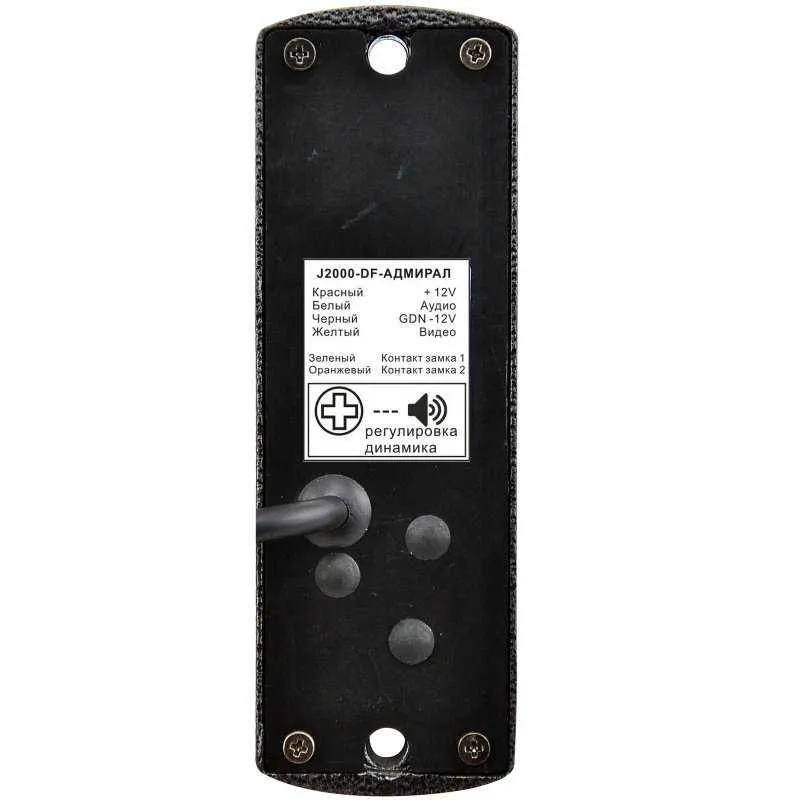 Вызывная панель J2000-DF-Адмирал устанавливается при помощи накладного крепления. В комплектацию входит вызывная панель, уголок, крепежные элементы. Особенностью вызывной панели является надежная защита от негативных воздействий при уличной эксплуатации, влаги и конденсата - внутренняя плата покрыта тройным слоем защитного лака.