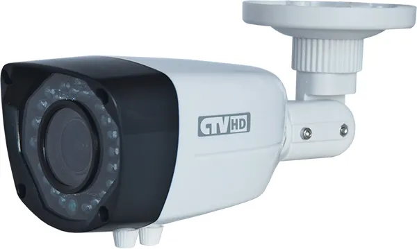 Цветная видеокамера с поддержкой стандартов AHD/TVI/CVI/CVBS, разрешение 1080p (Full HD), варифокальный объектив, ИК подсветка до 30 метров, для установки внутри/вне помещений.