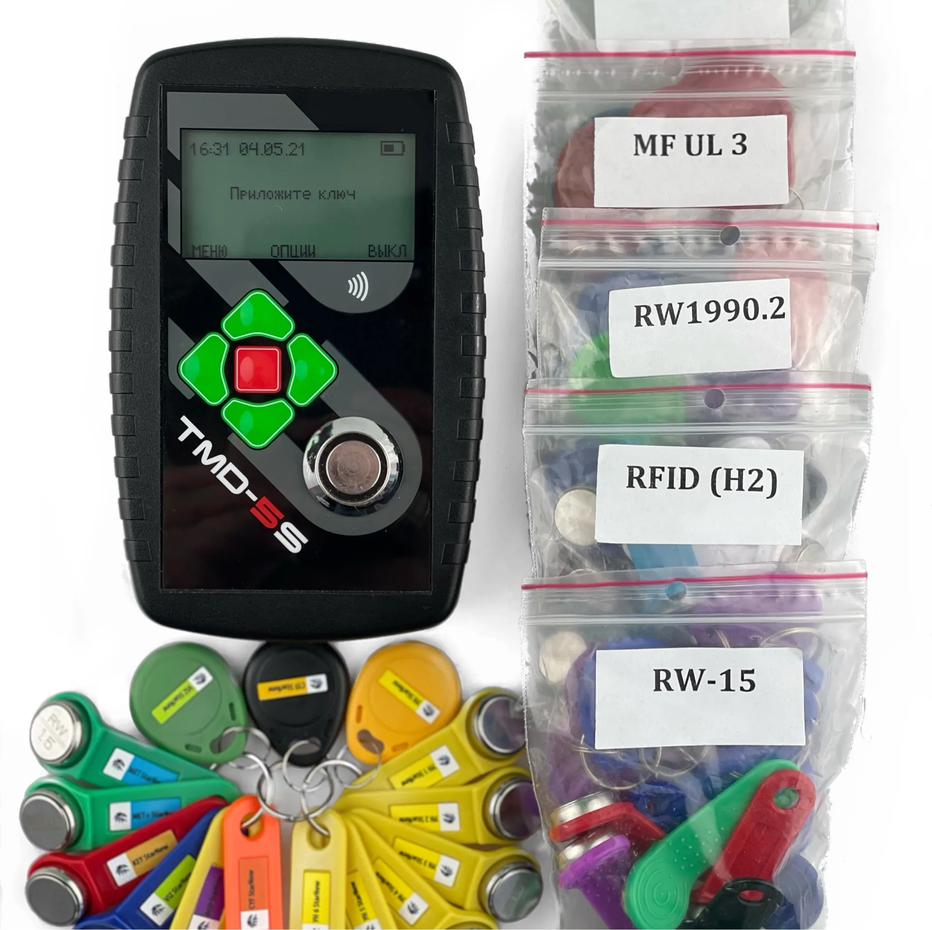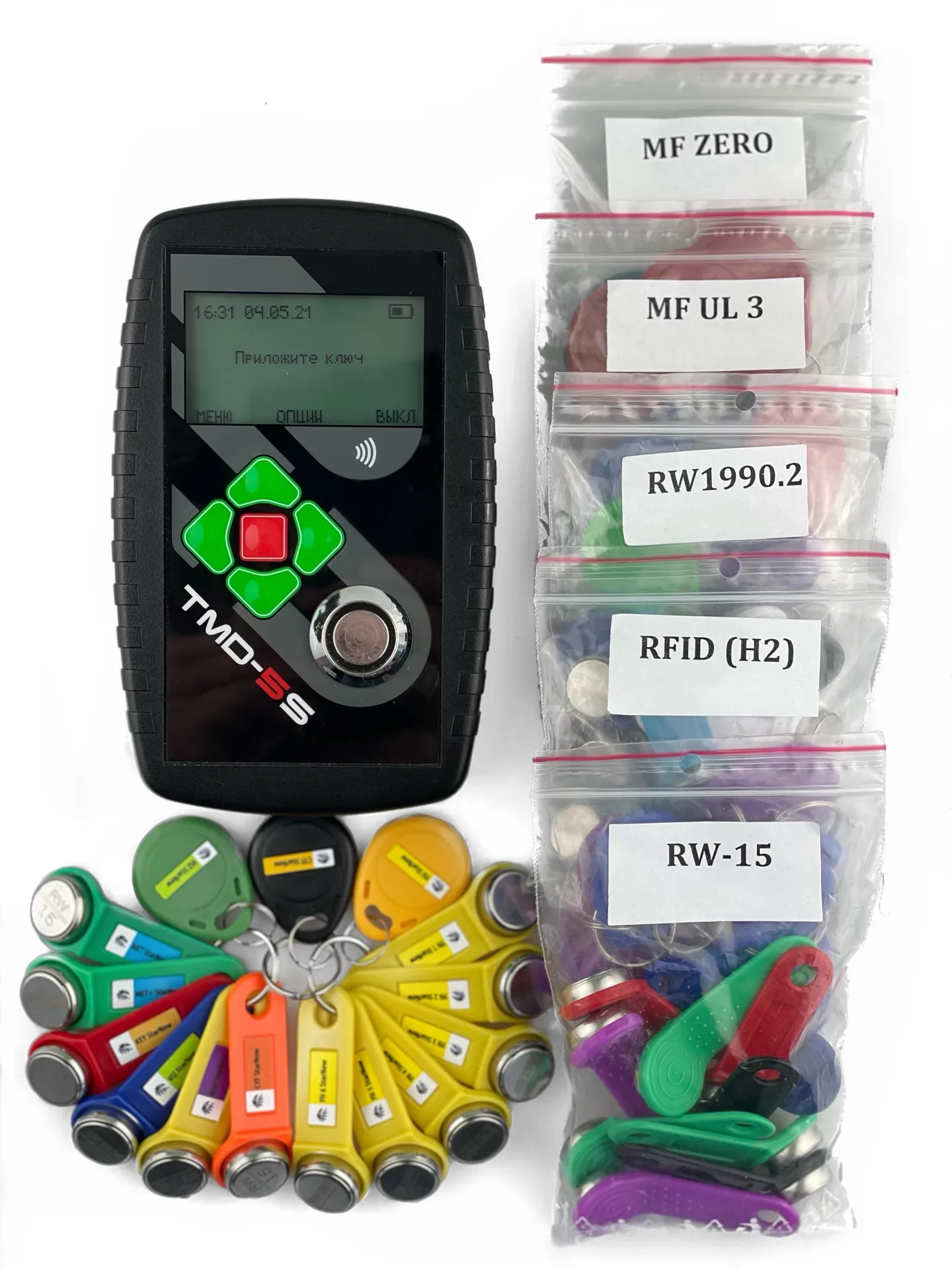 В комплектации: дубликатор TMD-5S, заготовка, ключ RW1990.2, RW15, заготовка, брелок MF Zero, RFID (H2),УК-15.