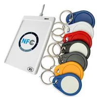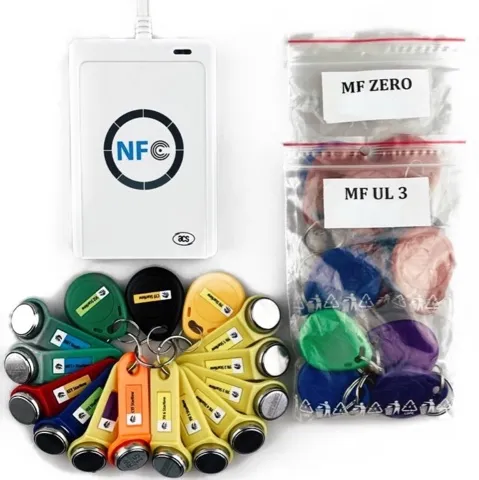 Настольный набор "Мастер Mifare" считыватель ACR122U и заготовки ключей, читает и записывает nfc-метки с бесконтактных карт и брелков Mifare в автоматическом режиме. Достаточно приложить брелок к прибору. Процессы отображаются в специальной программе на компьютере, к которому подключается считыватель через USB-порт. Программное обеспечение позволяет начать копирование ключей после несложных действий установки программы.