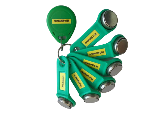 В комплекте "Вездеход УК-6v3" пять контактных ключей зеленого цвета и один бесконтактный. Работают они по принципу критического кода. Ключ при соприкосновении со считывателем домофона вводит его в состоянии ошибки, и домофон срабатывает на открытие. Эта функция предусмотрена у каждого отечественного производителя домофонов по умолчанию. Если же механизм аварийного открытия заблокирован, то схема не работает и необходимо подбирать другими способами.
