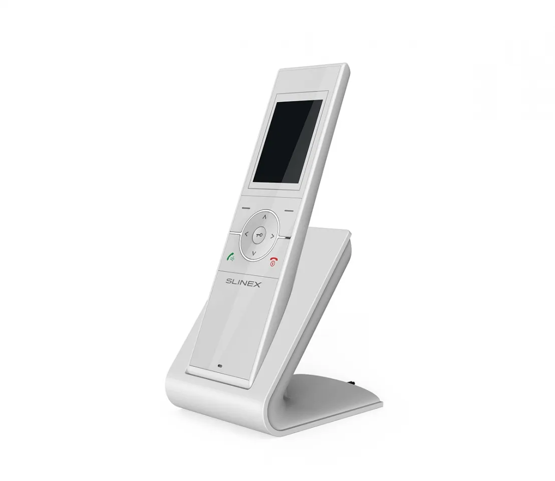 Размеры: базовая станция - 80×95×104 мм; трубка - 53×188×26 мм; вызывная панель - 105×167×50 мм. У трубки есть цветной дисплей, размером 2,4 дюйма.