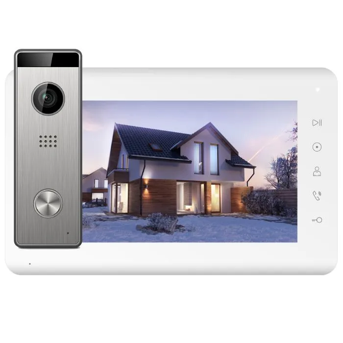 - Монитор цветного видеодомофона 7 дюймов с сенсорными кнопками с поддержкой форматов Full HD 1080p, HD 720p, CVBS .