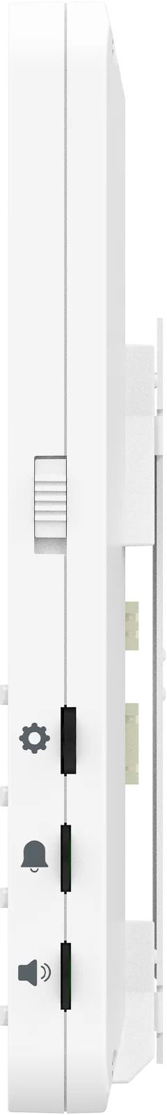 Управление основными функциями монитора (просмотр видео с подключенных панелей, разговор с посетителями, открытие замка) осуществляется четырьмя кнопками, расположенными снизу от экрана, а навигация по экранному меню, регулировка уровня громкости вызова и разговора ― с помощью кнопки-колесика и двух регуляторов на правой грани монитора. Также на правой грани монитора расположен механический выключатель питания.