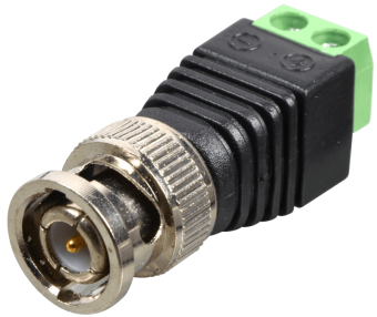 - Коннектор (разъём интерфейсный), соединитель для коаксиального кабеля. Разъём предназначен для подключения видеокамер к устройствам приёма/передачи через кабели различного типа.