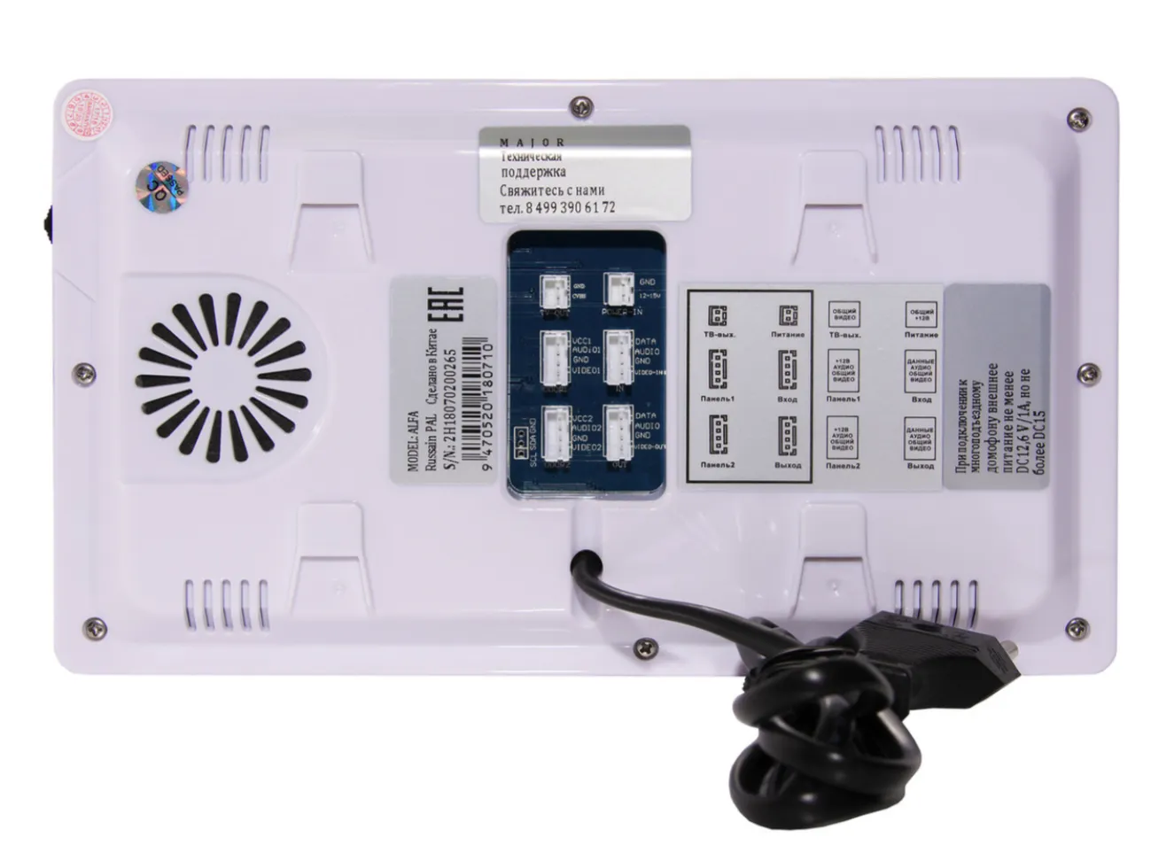 Технические характеристики монитора видеодомофона Major Alfa SD