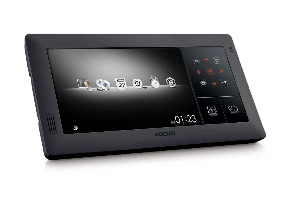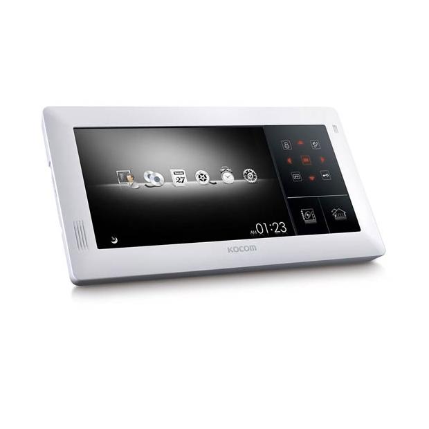 Kocom KVR-A510R - Отличный монитор с цветным изображением для домофонной системы. Основное отличие – это десятидюймовый экран с полностью сенсорным управлением, качественным изображением, с замечательным, для такого типа устройства, разрешением. В дополнение прилагается четырехканальный видеорегистратор с функцией сжатия поступающей информации Н. 264. Монитор KVR-A510R может работать одновременно с четырьмя абонентскими устройствами, в том числе и с дополнительной аудиотрубкой модели KDP-602G. В дополнение можно организовать домашнюю систему видеонаблюдения с подключением до четырех наружных камер. В качестве дополнительной опции можно выделить интерком между несколькими домофонами, функцию автоматического открытия дверей. Запись видео осуществляется в режиме реального времени. Благодаря экранному меню систему удобно настраивать и перепрограммировать. На выбор для хорошего восприятия предлагается до пяти мелодий. Вся информация о посетителях может быть просмотрена дистанционно посредством интернет браузера.