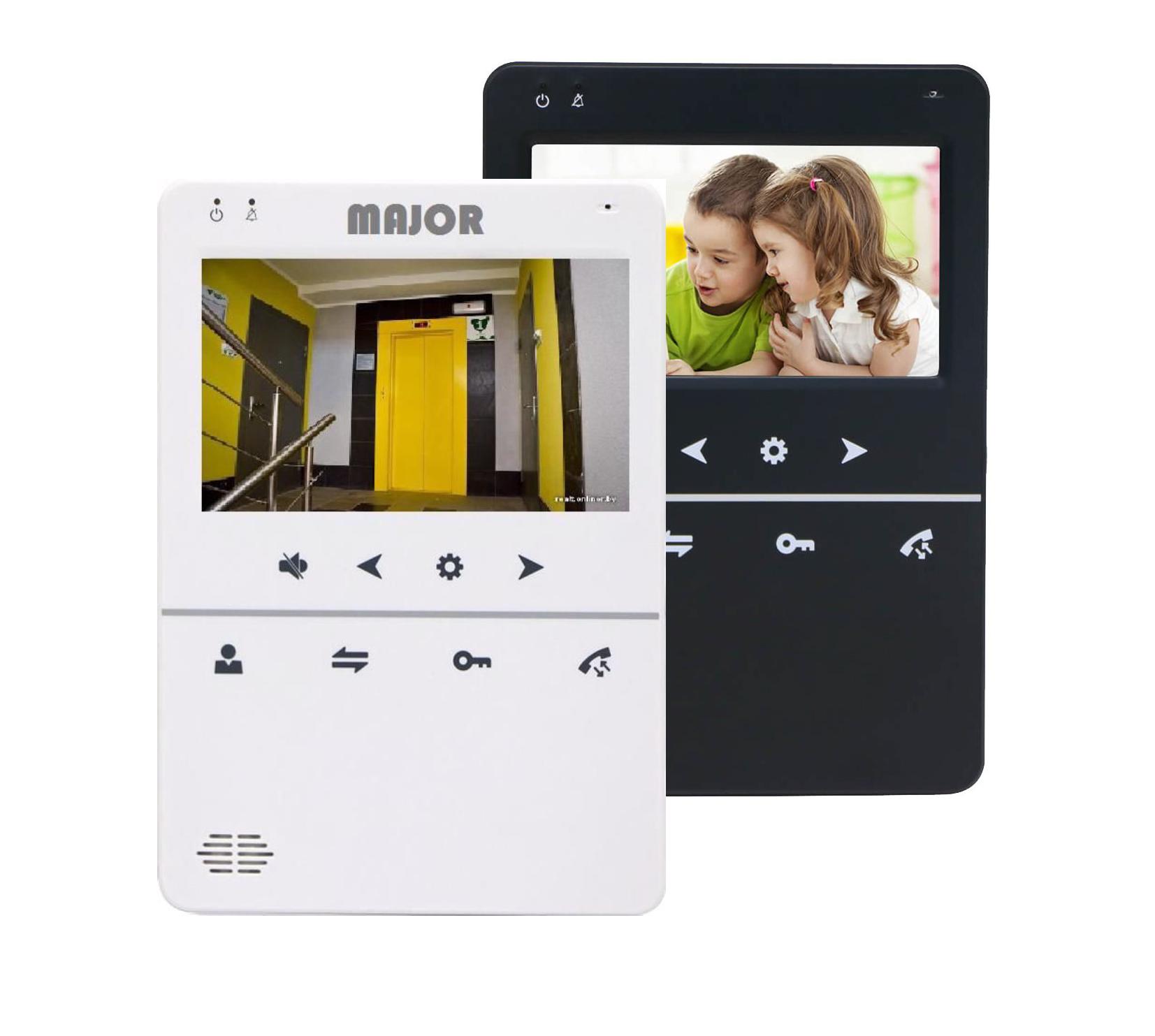 Major Solo SD - цветной 4,3" разрешение экрана 480x272, Hands free (без трубки), до 4 аудиотрубок, до 4 экранов в режиме интеркома, в наличии источник питания 220 В или 12-15В, размер: 200 мм х 140 мм х 24 мм.