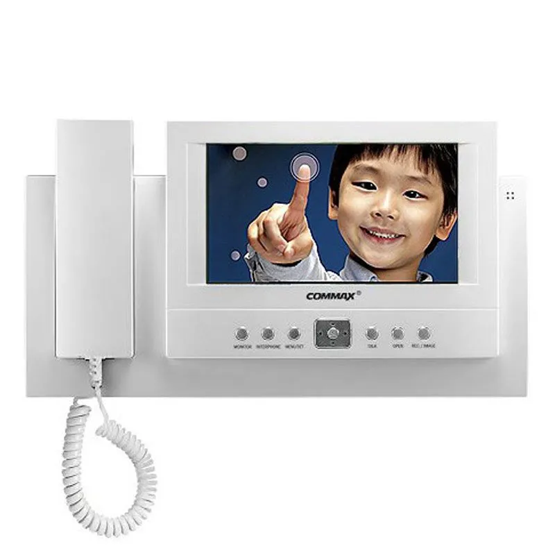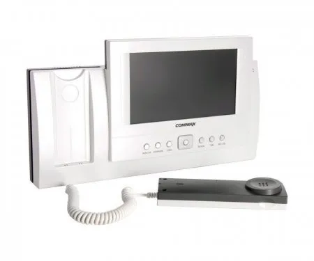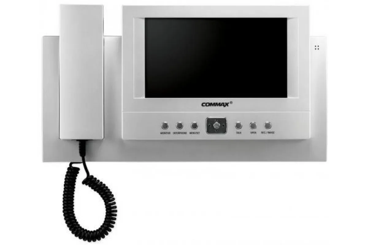 Commax CAV-71B -монитор видеодомофона с 7-ми дюймовой диагональю,жидко кристаллическим цветным экраном. Что дает качественное четкое изображение. Встроенная энергонезависимая память на 128 кадров. При звонке производит фото фиксацию с датой и временем посетителя.Разговор производится при помощи трубки. Открывание дверей кнопкой на мониторе. Допустимо подключение 4-х видео цветных панелей и 20 мониторов при помощи блока управления CDS-4CM. Возможность отрегулировать громкость, звук, цвет и контрастность. Управление при помощи кнопок.