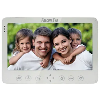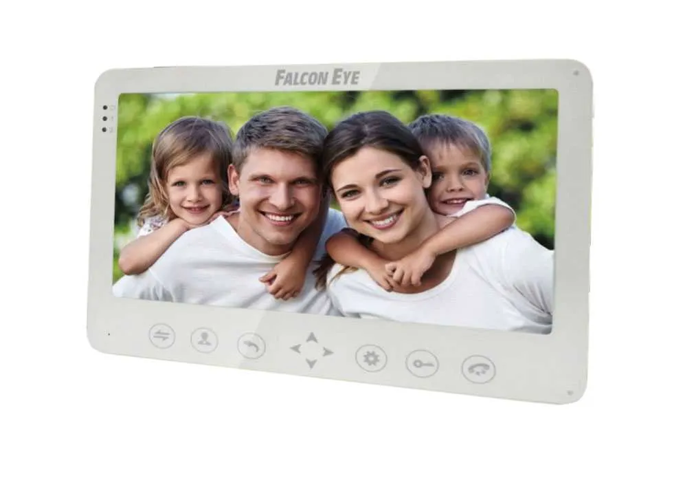 Доступные цвета: белый. Монитор видеодомофона Falcon Eye FE-101M с цветным экраном диагональю 10" (около 25 см) и сенсорными кнопками управления. Поддержка карты памяти microSD