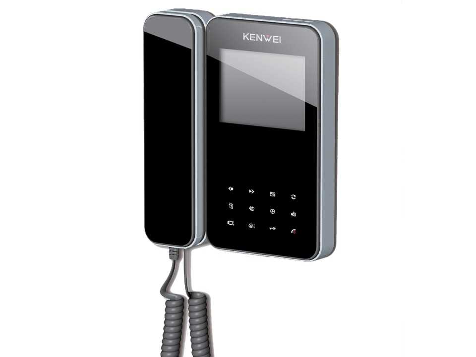 Доступные цвета: черный, Видеодомофон Kenwei KW-E350C. Размер экрана 3,5"TFT LCD цветной, трубка на магните, полифонические мелодии вызова, PAL\NTSC.