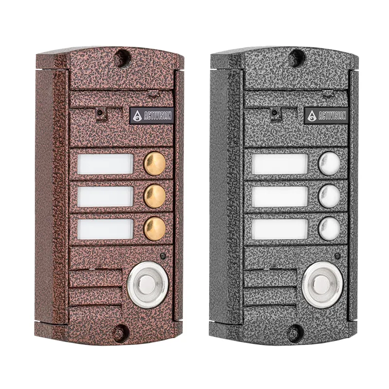 Доступные цвета: антик, медь. Видеокамера 1/3", 1000 ТВЛ, встроенная ИК-подсветка до 0,6 м, встроенный Touch Memory считыватель, 75° угол обзора по горизонтали, накладная установка, антивандальное исполнение, 4-проводное соединение, 3 абонента