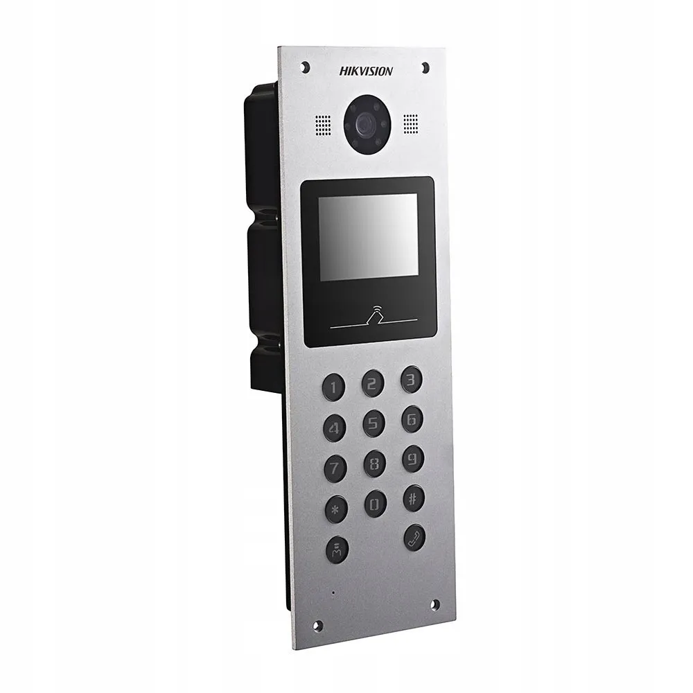 Hikvision DS-KD3002-VM – это удобная и современная многоабонентская IP панель, предназначенная для контроля и управления доступом и отличающаяся малыми габаритами, прекрасной степенью безопасности и надежности, выполненная в уникальном алюминиевом корпусе со встроенным считывателем IC-карт.