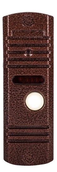Доступные цвета: серебро / медь. Вызывная панель для видеодомофона 420 Твл с углом обзора 74 гр, компактный корпус, подсветка кнопки вызова цв.бронза, монтаж. уголок и козырек в комплекте. CVBS Разрешение 420 Твл, Частота 25к/с, угол обзора 70°. Размеры 130×40x20мм.