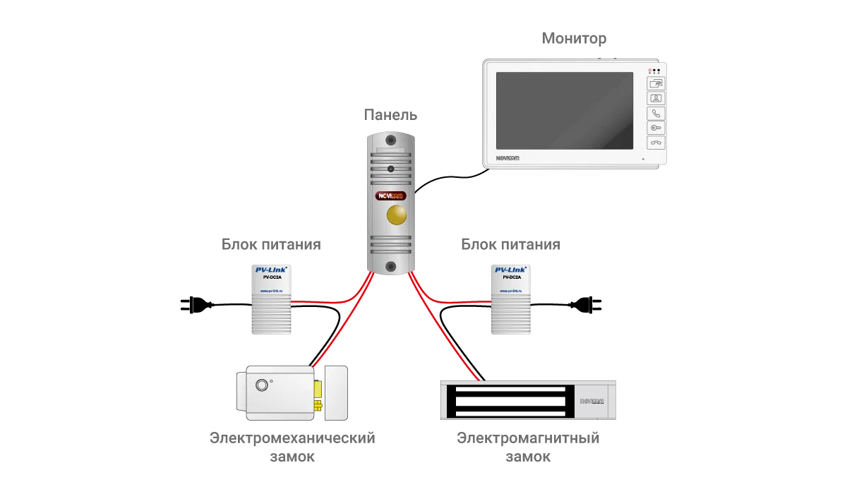 - Power lock - управление электромеханическим замком без БП (кратковременный импульс 2A)