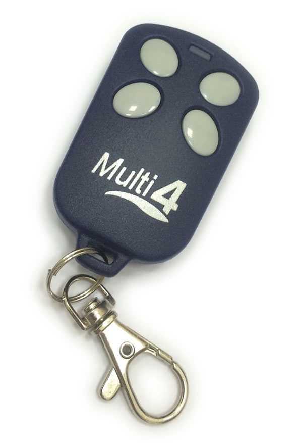 Представляем Вам четырехканальный пульт-брелок применяемый для дистанционного управления в более чем 15 приемниках различной автоматики (в том числе и в автоматике ворот, шлагбаумов и т.д.). Работает Multi 4 с фиксированным кодом на частоте 433,92 МГц. Какждая из четырех кнопок пульта может быть запрограммирована на отдельный приемник, будь одним из них радиоприемник BFT, вторым, например, может быть BENINCA и т.д. Пульт изготовлен из пластика и имеет привлекательный внешний вид. Это прекрасная замена оригинальному пульту, который по тем или иным причинам вышел из строя, либо стал нестабильно работать.