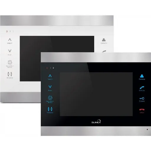 Видеодомофон Slinex SL-07M. Цветной видеодомофон с 7" дюймовым экраном, прекрасным дизайном отмеченным многими наградами, используются натуральные материалы: стекло и алюминий, управление при помощи сенсорных клавиш с надписями на русском языке. Монитор Slinex SL-07M позволяет подключить к себе 2 вызывные панели и 2 видеокамеры. Имеется возможность создания функции интеркома, (требуется 2-й монитор SL-10 либо SL-07). На выбор в качестве мелодии звонка предоставлено 12 полифонических мелодий. Также есть возможность, Регулировки яркости, контрастности и цветности индивидуально для каждой панели или камеры, есть функция Не беспокоить и функция Переадресации входящего вызова между мониторами. Время просмотра изображения с вызывных панелей составляет 30 секунд. При просмотре с видеокамер изображение сохраняется до выключения экрана. Вместо видеокамер можно подключить, DVD плеер, что бы использовать видеодомофон как телевизор или проигрыватель.