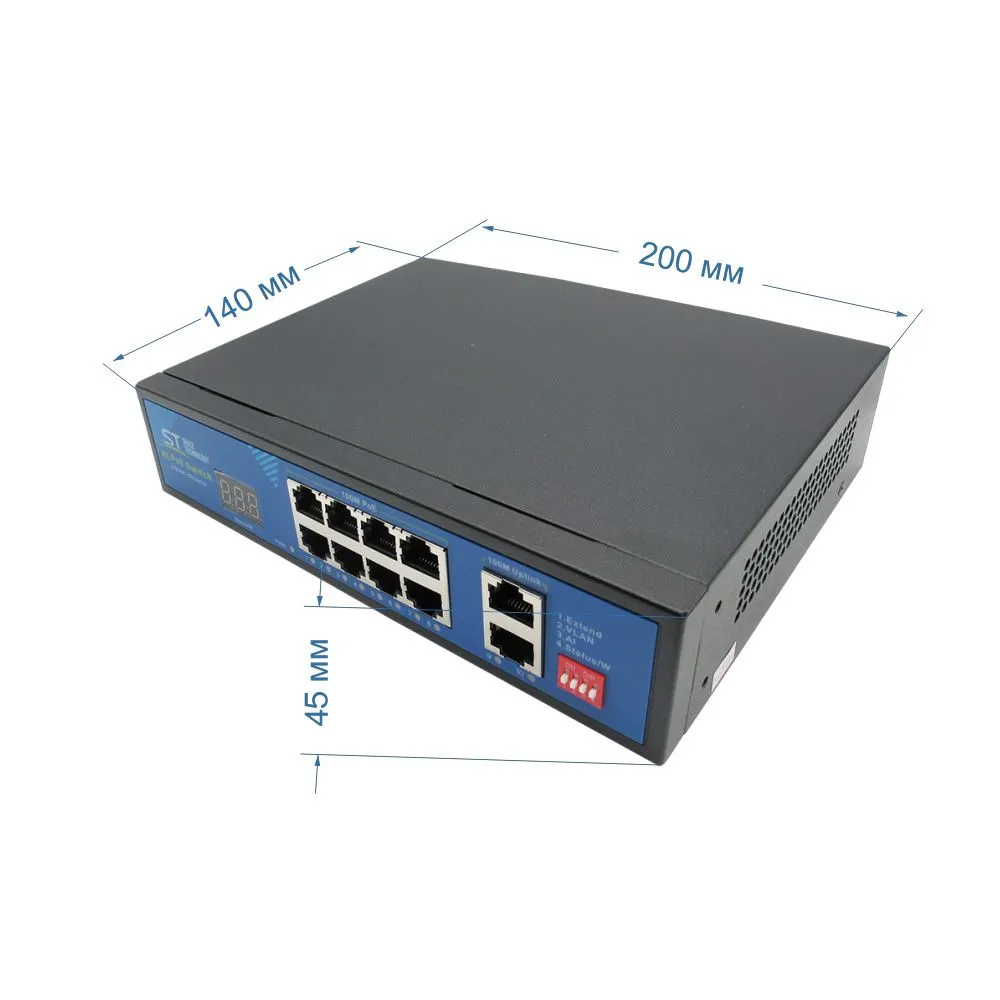 - PoE порты: 8 х (10/100 Мбит/с)