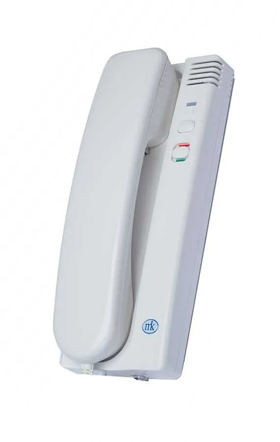 Доступные цвета: белый. Квартирная, светодиодная индикация, механические кнопки, регулировка громкости динамика, регулировка громкости вызывного сигнала, регулируемое время открывания замка, до 4-х трубок к одному вызыному блоку.