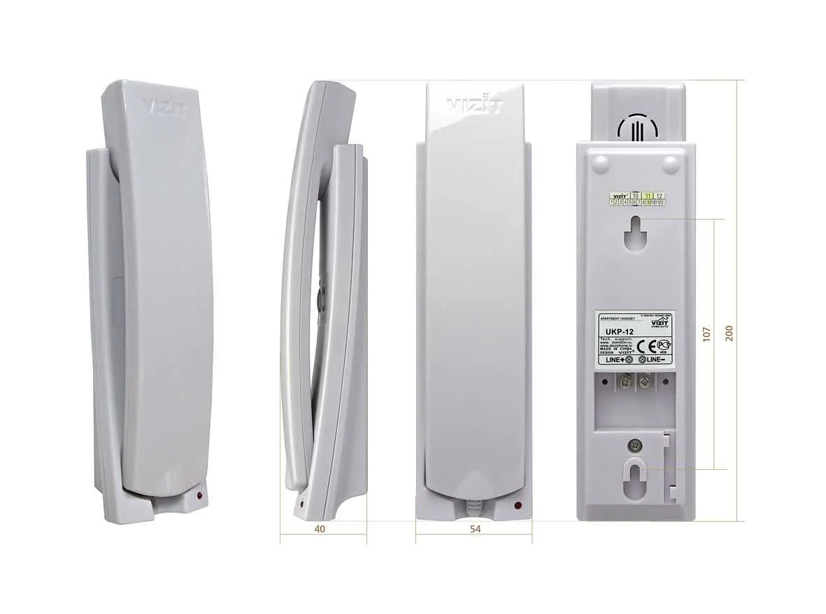 Перед Вами представитель квартирной переговорной трубки УКП-12 от VIZIT. Прекрасно работает в качестве абонентской трубки в домофонах VIZIT серий 300, 400, SM, N, M. Качество передаваемого разговора обеспечивается дуплексной связью, которую способна обеспечить УКП-12.