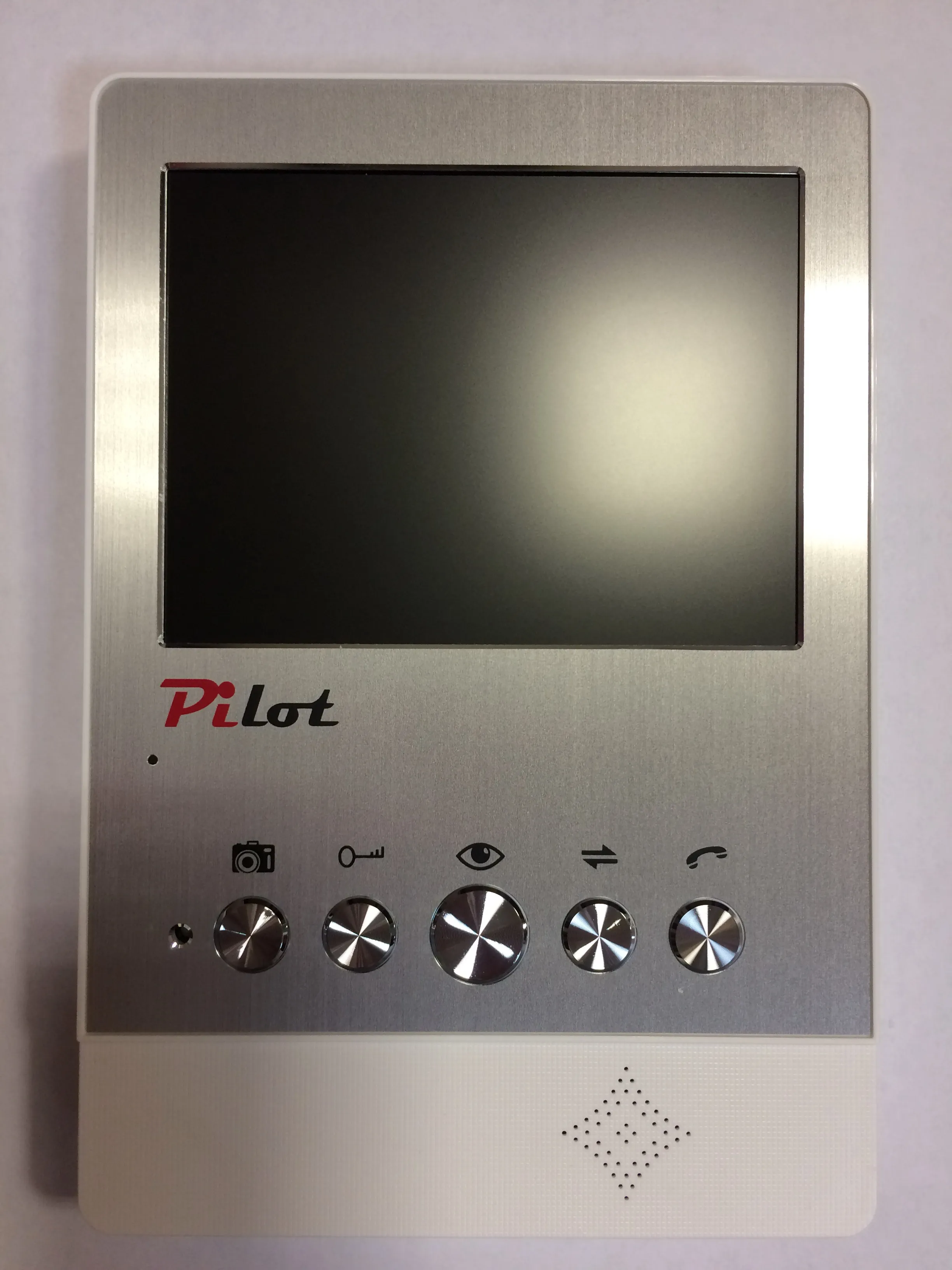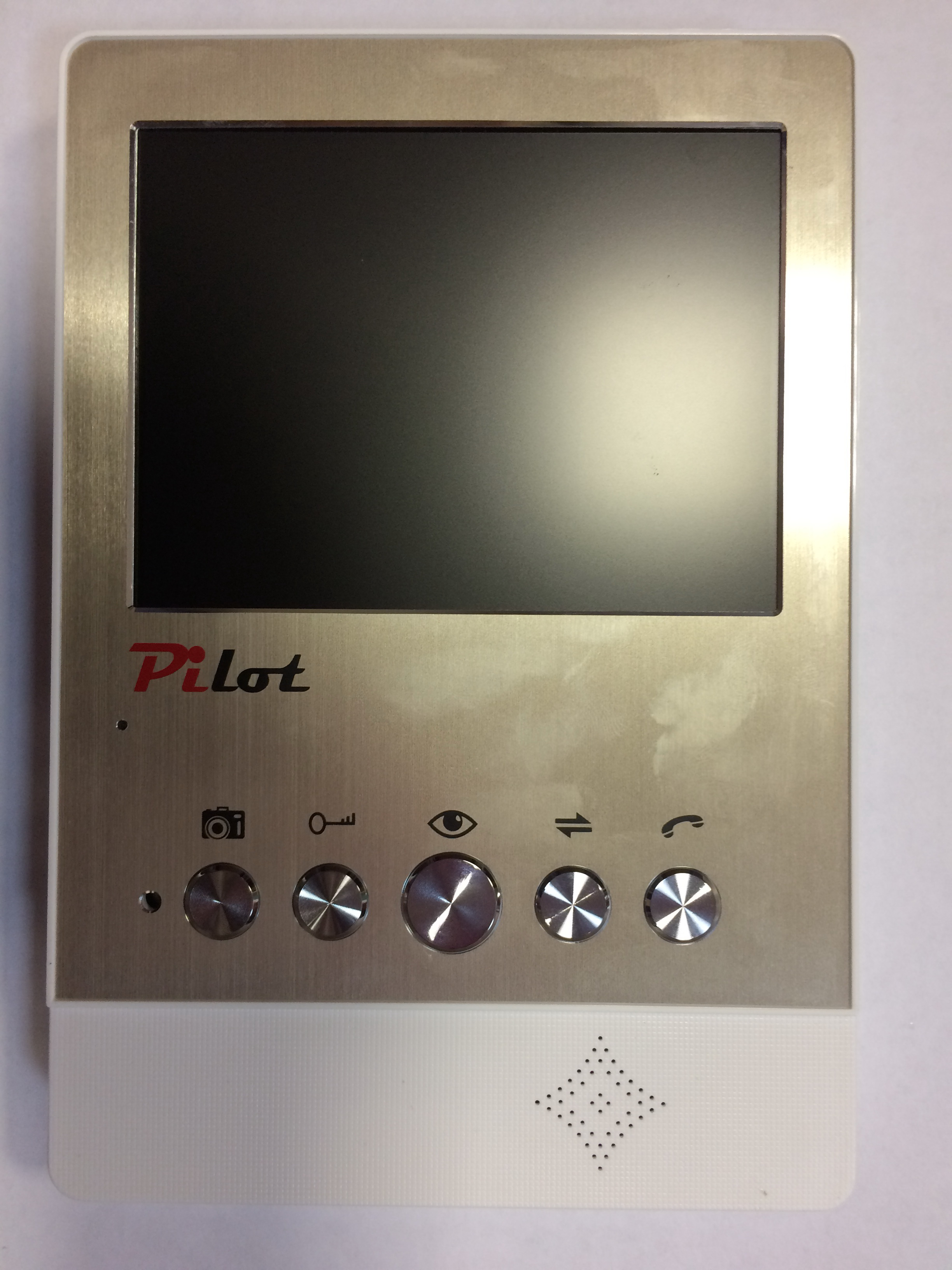 Дотсупные цвета: золото, серебро. Видеодомофон PILOT-5M. Интерком работает по первомуканалу вызывной панели. Монитор PILOT-5M имеет встроенную память на 100 кадров. Когда посетитель нажимает кнопку вызова, картинка сохраняется автоматически.