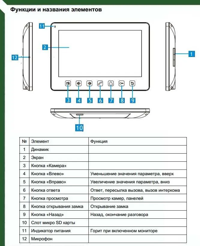 Монитор видеодомофона Tantos Prime Slim - Документация