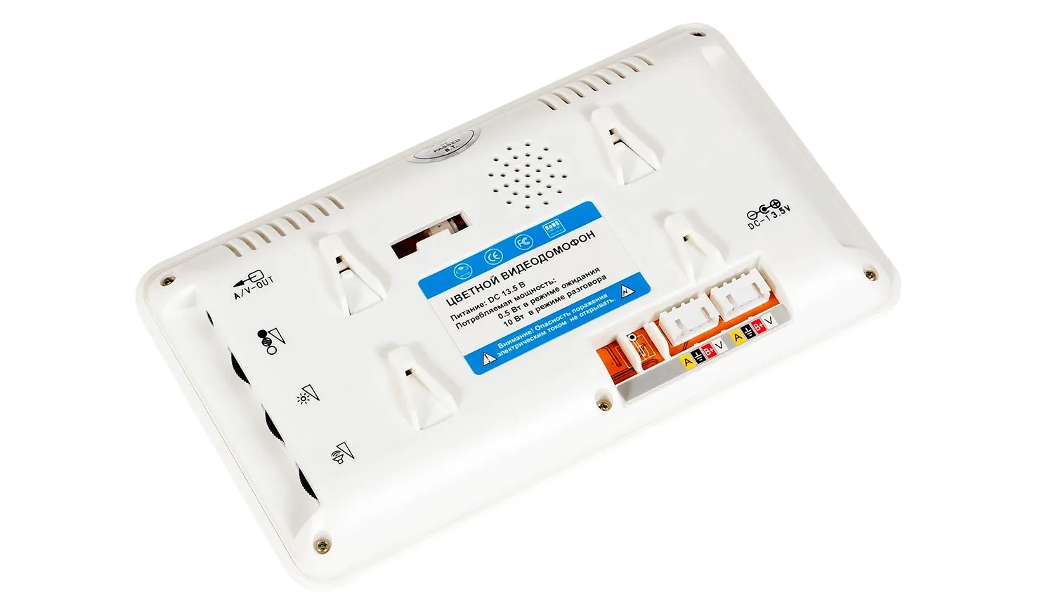 Доступные цвета: белый, черный. Цветной экран 3,5”, TFT, PAL, Hands Free, сенсорное управление, просмотр фото с вызывной панели, без записи, беззвучный режим, интерком, подключение до 2 вызывных панелей