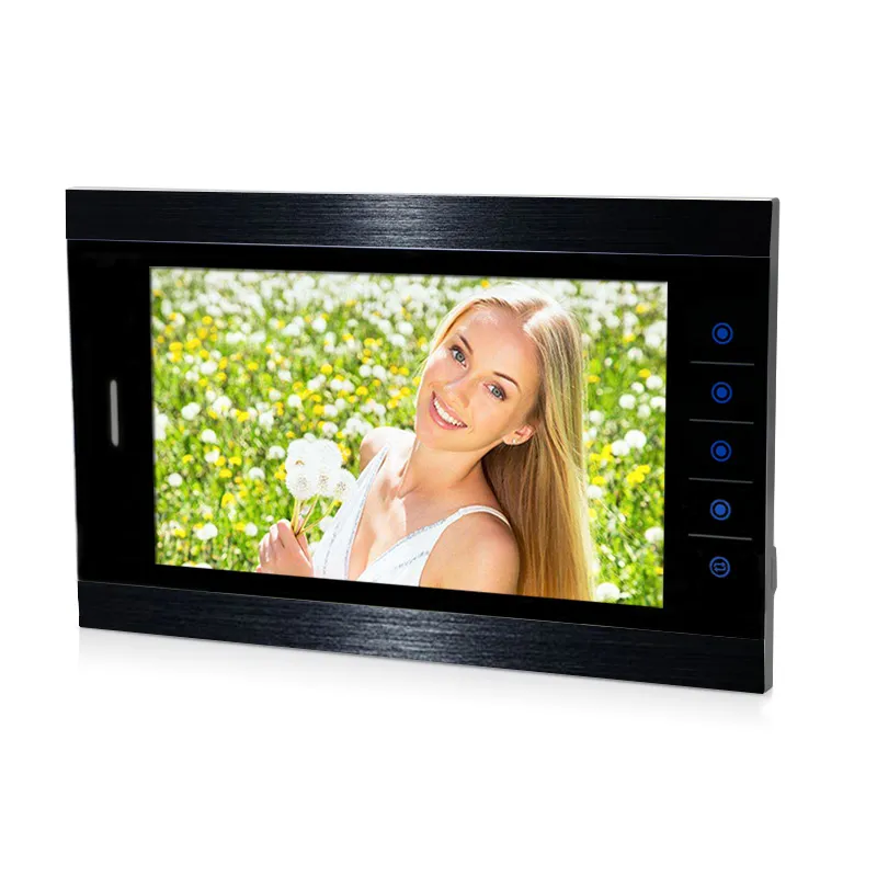 Видеодомофон с экраном 10,1 дюйма, представлен в классическом черном дизайне, что позволяет его установить в интерьере любой квартиры.