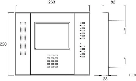 Доступные цвета: серебристый. Экран 5", TFT LCD, NTSC, без трубки (Hands Free), подключение к телефонной сети (тоновый набор), подключение дополни тельных датчиков: вторжения, утечки газа, пожар, AC 110-230В.