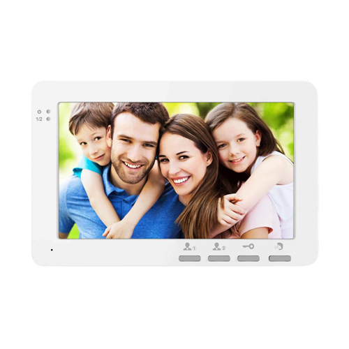 Цветной монитор видеодомофона без трубки оснащен 7-дюймовым экраном с механическими кнопками. Видеодомофон поддерживает видеосигнал формата PAL. Устройство поддерживает подключение до 2 вызывных панелей. Монитор видеодомофона поддерживает подключение к подъездным домофонам через блок сопряжения J2000 и его аналоги. Питание видеодомофона осуществляется от внутреннего блока питания (220 В).