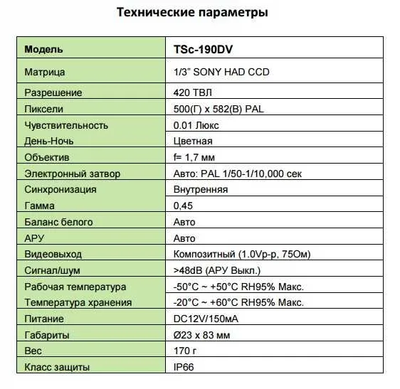 Камера Tantos TSc-190DV обладает и автоусилением, и автоматическим балансом белого и настройки объектива осуществляются без специальных инструментов. На видеовыходе Вы получаете композитный сигнал, который можете выводить на Ваше монитор. Разрешение камеры видеоглазка 420 ТВЛ, что способно выдавать качественную "картинку".