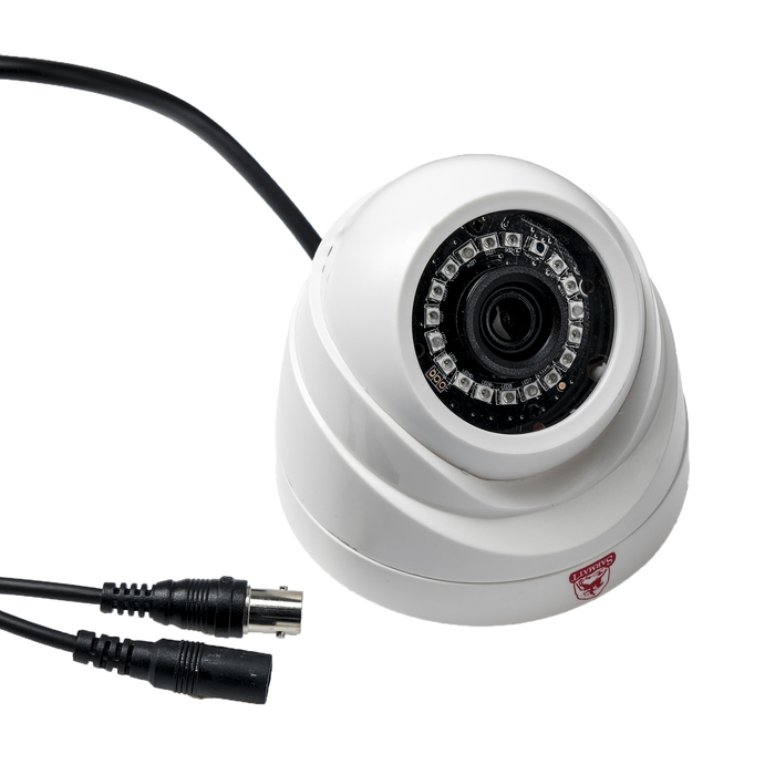 Видеокамера купольная гибридная имеет разрешение 5Мп/4Мп,6 в 1 (5МП:AHD/TVI; 4Мп:AHD/TVI/CVI/CVBS), чувствительность 0.001 Лк, f=3.6 мм, 3DNR, AWB, AGC, D/N, Sense-up, DWDR, OSD,UTC, ИК подсветка 20 метров, рабочий диапазон температур -10 ~ +50°C.