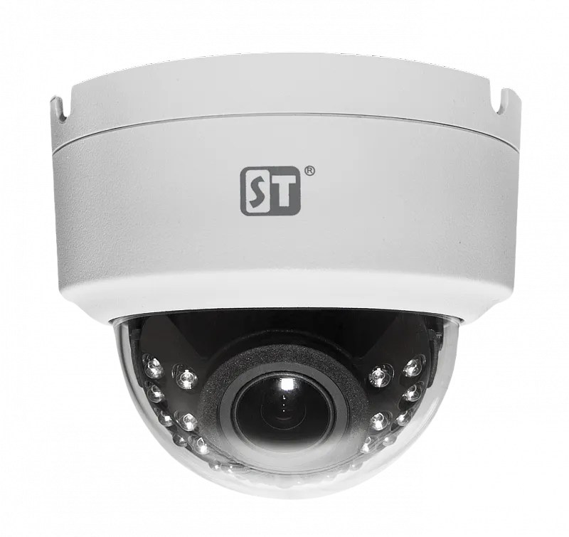 Видеокамера ST-2004 (2,8-12mm) внутренняя - цветная, 2MP,внутренняя, с ИК подсветкой, Купольная, Сенсор: 1/1,3" Progressive Scan CMOS, Фокусное расстояние: 2,8-12mm (соответствует 103-30.8° по горизонтали), Дальность ИК подсветки: до 20 м, 18 SMD СИД, Светочувствительность (мин. освещение): 0,01/0 Lux с ИК Люкс, Электронный затвор: 1/50-1/10000 сек, Напряжение питания: Стабилизированное 12 Вольт ±10%, Ток потребления максимальный: 0,38 А, OSD-меню: есть, Функции улучшения изображения: BLC, DWDR, AWB, MWB, 2DNR,AGC, ИК-фильтр: IR-CUT (механический), Smart IR: есть, 25 к/сек Real Time, Регулировка кронштейна: 3D-Ось, Рабочая температура: -20°… +60°С, Степень защищенности/вандалостойкость: IP65, Материал корпуса: пластик.