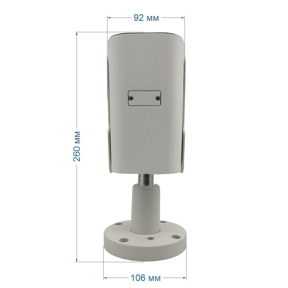 - Комплектность: Камера с кабелем для подключения, крепеж (дюбель-пробка + шуруп), колпачок защитный, ПВХ, для изоляции LAN (RJ-45) разъема от влаги, шаблон бумажный для разметки крепления, паспорт, упаковочная коробка
