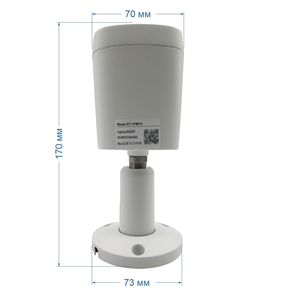 - Комплектность: Камера с кабелем для подключения, крепеж (дюбель-пробка + шуруп), колпачок защитный, ПВХ, для изоляции LAN (RJ-45) разъема от влаги, шаблон бумажный для разметки крепления, паспорт, упаковочная коробка.